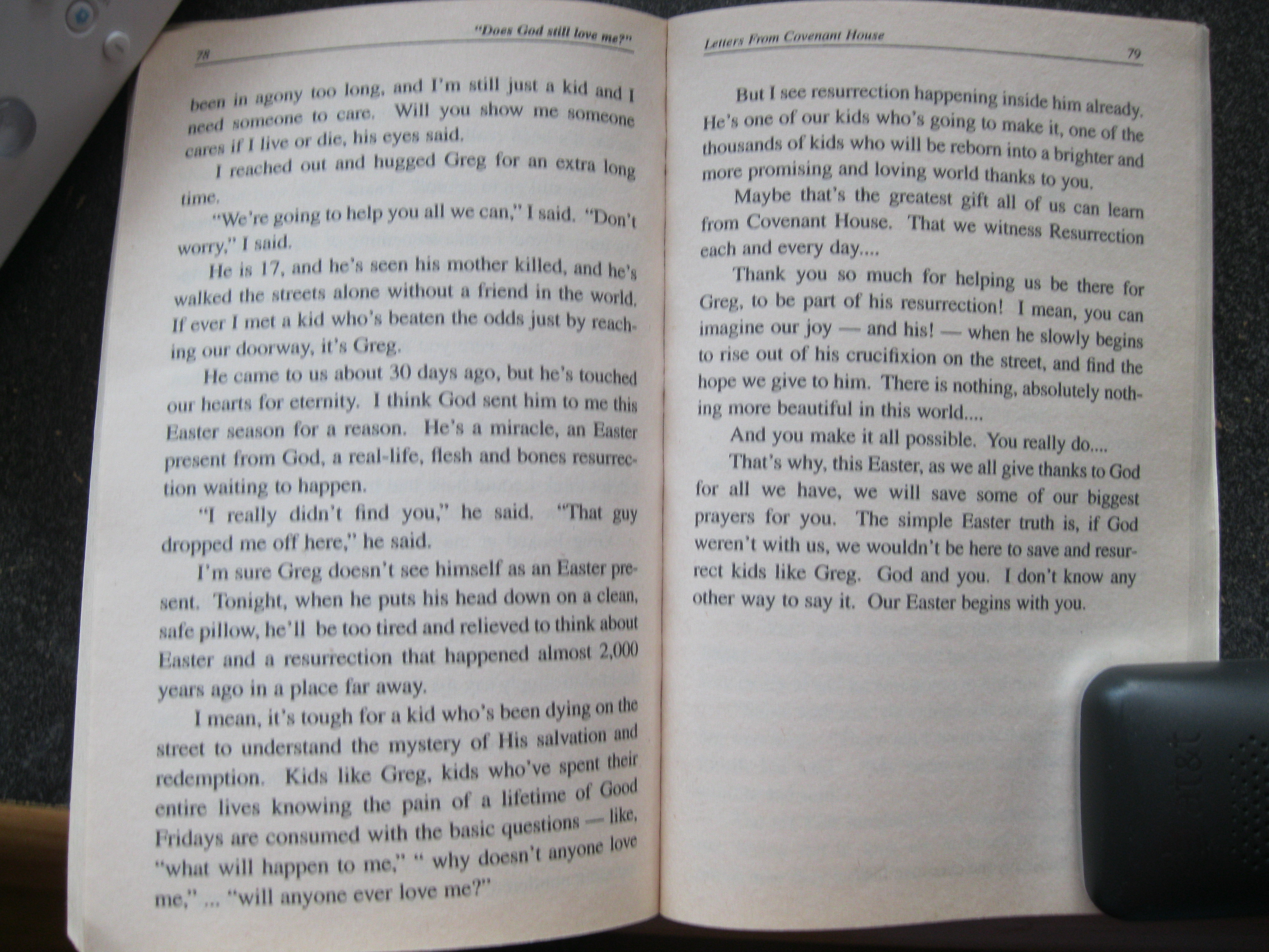 [Do you know someone who needs help? In the USA call 1-800-999-9999. This book is by Covenant House, an organization that helps homeless children. to make a donation call 1-800-388-3888 I am not associated with Covenant House]